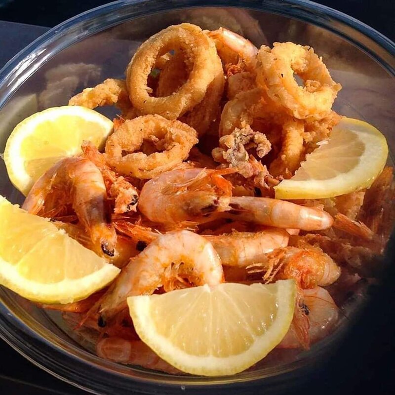 Eccellente Frittura di Calamari verace XXL con Gamberetti rosa,